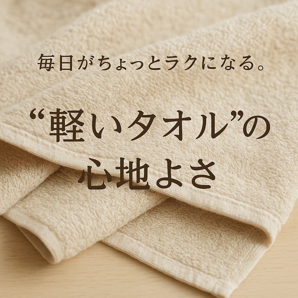 /タオル研究所の軽量タオルは、ただ軽いだけでなく、**使う人の暮らしにしっくり馴染む“ちょうどよさ”**が魅力。